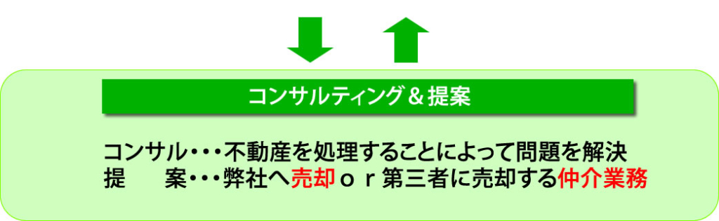 昨年までの当社取り扱い物件のうち、弁護士・税理士等の士業の方を通じての相談が大半です。 不動産コンサルティングのプロとして、お客様のご希望・問題点等を各々物件ごとに精査し、対応するオーダーメード仕様を整えております。 以下のケースのように、当社が直接購入させて頂く場合もありますし、買主様(売主様)を探して仲介業務を執り行ったりします。